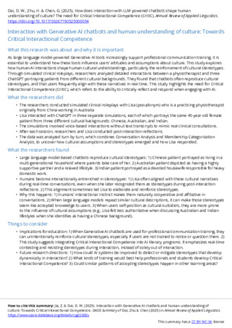 Title: | Interaction with Generative AI chatbots and human understanding of culture: Towards Critical Interactional Competence |