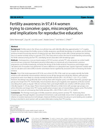 | Title: | Fertility awareness in 97,414 women trying to conceive: gaps, misconceptions, and implications for reproductive education |