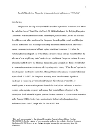 | Title: | Parallel Revolution: Hungarian Peasants during the Upheavals of 1918–1920 |