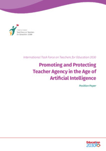 Artificial intelligence (AI) is reshaping the education landscape, yet its transformative potential will ultimately be defined by the people who design, implement, and mediate its use. Central to this human infrastructure are teachers, whose professional capacities and agency should be foregrounded in any AI integration strategy. Investing in teachers’ professional development, through robust, future-oriented, and contextually grounded initiatives, is thus a critical way to ensure that AI technologies complement, rather than replace, the pedagogical expertise and ethical judgment at the heart of teaching. This position paper is closely aligned with the mandate of the International Task Force on Teachers for Education 2030 (TTF), reflecting the collective perspectives of TTF’s diverse global constituency and reaffirming the imperative to uphold teachers’ agency, dignity, and professional autonomy as technology changes. It sets forth the TTF’s initial position on AI in education and aims to catalyse deeper policy dialogue, collaboration, and the joint construction of guiding principles that acknowledge teachers’ central role in equitable and sustainable education futures.