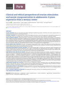 Title: | Clinical and ethical perspectives of ovarian stimulation and oocyte cryopreservation in adolescents: 6 years experience from a tertiary centre |