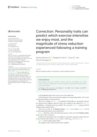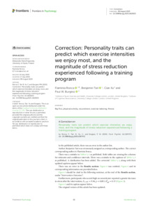Title: | Correction: Personality traits can predict which exercise intensities we enjoy most, and the magnitude of stress reduction experienced following a training program |