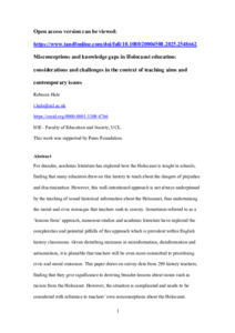 Title: | Misconceptions and knowledge gaps in Holocaust education: considerations and challenges in the context of teaching aims and contemporary issues |