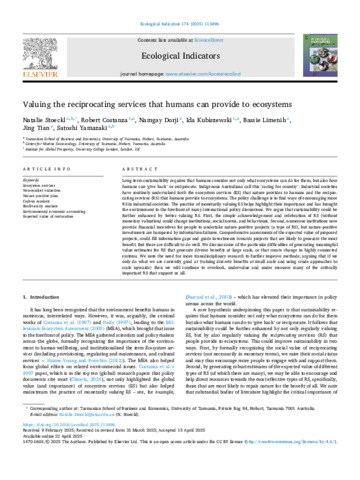 Title: | Valuing the reciprocating services that humans can provide to ecosystems |