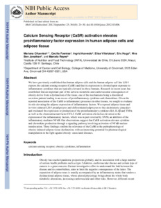 Title: | Calcium sensing receptor activation elevates proinflammatory factor expression in human adipose cells and adipose tissue |