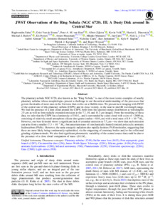 Title: | JWST Observations of the Ring Nebula (NGC 6720). III. A Dusty Disk around Its Central Star |