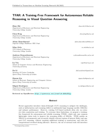 Title: | TFAR: a training-free framework for autonomous reliable reasoning in visual question answering |