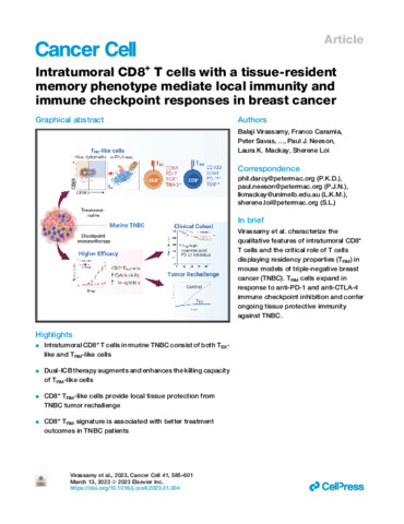 Title: | Intratumoral CD8+ T cells with a tissue-resident memory phenotype mediate local immunity and immune checkpoint responses in breast cancer |