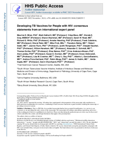 | Title: | Developing tuberculosis vaccines for people with HIV: consensus statements from an international expert panel |
