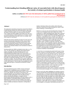 | Title: | Understanding How Blending Different Ratios of Renewable Fuels with Diesel Impacts the Toxicity of Exhaust Particulates to Human Health |