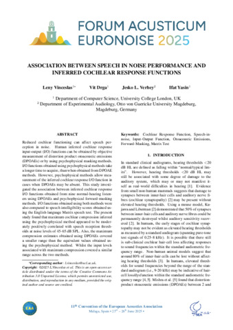 | Title: | Association between speech in noise performance and inferred cochlear response functions |