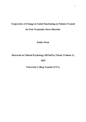 | Title: | Trajectories of Change in Social Functioning in Patients Treated for Post-Traumatic Stress Disorder |