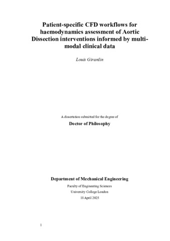 | Title: | Patient-specific CFD workflows for haemodynamics assessment of Aortic Dissection interventions informed by multi-modal clinical data |