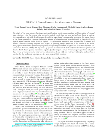 Keywords: | MESOM, Space Mission Design, Solar Corona, Space Weather |