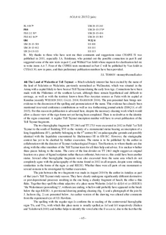 A new join of fragments excavated at Tell Tayinat on the Amuq plain in Hatay province Turkey in 2012 clarifies the form of the country name Palastin/Walastin, which is now associated by some with the name of the Philistines known from the southern Levant in the Hebrew Bible.