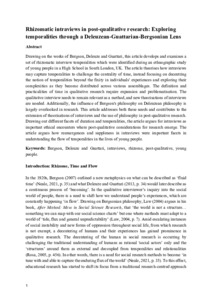 Title: | Rhizomatic intraviews in post-qualitative research: exploring temporalities through a Deleuzean-Guattarian-Bergsonian Lens |