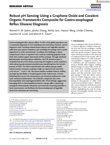 Adv Healthcare Materials - 2025 - Salem - Robust pH Sensing Using a Graphene Oxide and Covalent Organic Frameworks.pdf - Published Version Download (3MB) | Preview |