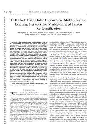 Title: | HOH-Net: High-Order Hierarchical Middle-Feature Learning Network for Visible-Infrared Person Re-Identification |