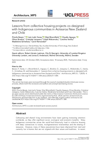 Title: | Lessons from collective housing projects co-designed with Indigenous communities in Aotearoa New Zealand and Chile |