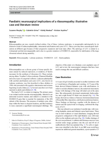 Title: | Paediatric neurosurgical implications of a ribosomopathy: illustrative case and literature review |