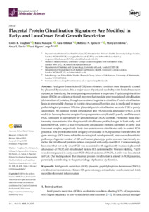 Title: | Placental Protein Citrullination Signatures Are Modified in Early- and Late-Onset Fetal Growth Restriction |