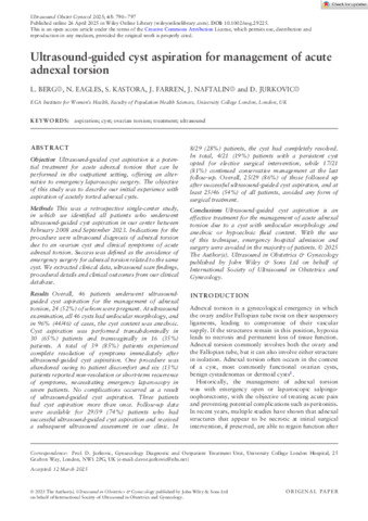 Jurkovic_Ultrasound in Obstet Gyne - 2025 - Berg - Ultrasound‐guided cyst aspiration for management of acute adnexal torsion.pdf Download (458kB) | Preview |