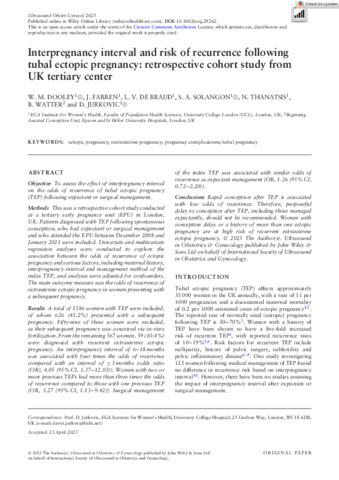 | Title: | Interpregnancy interval and risk of recurrence following tubal ectopic pregnancy: retrospective cohort study from UK tertiary center |