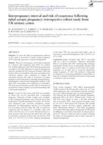 Ultrasound in Obstet Gyne - 2025 - Dooley - Interpregnancy interval and risk of recurrence following tubal ectopic.pdf - Published Version Download (223kB) | Preview |