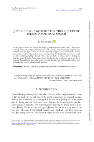 Title: | Just Kidding? Two Roles for the Concept of Joking in Political Speech |