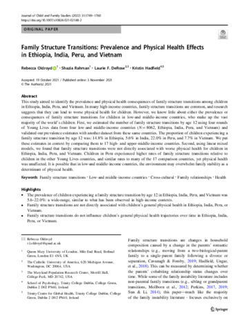 Family Structure Transitions Prevalence and Physical Health Effects in Ethiopia, India, Peru, and Vietnam.pdf - Published Version Download (739kB) | Preview |