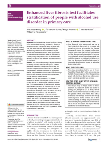 Enhanced liver fibrosis test facilitates stratification of people with alcohol use disorder in primary care.