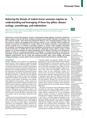 Title: | Reducing the threats of rodent-borne zoonoses requires an understanding and leveraging of three key pillars: disease ecology, synanthropy, and rodentation |