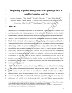| Title: | Diagnosing migraine from genome-wide genotype data: a machine learning analysis |