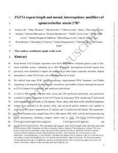 | Title: | FGF14 repeat length and mosaic interruptions: modifiers of spinocerebellar ataxia 27B? |