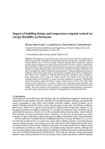 Title: | Impact of building design and temperature setpoint control on energy flexibility performance |