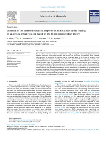 Title: | Inversion of the thermomechanical response in nitinol under cyclic loading: an analytical interpretation based on the thermoelastic effect theory |