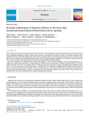 Bi-modal confirmation of liposome delivery to the brain after focused ultrasound-induced blood-brain barrier opening.pdf - Accepted Version Download (4MB) | Preview |
