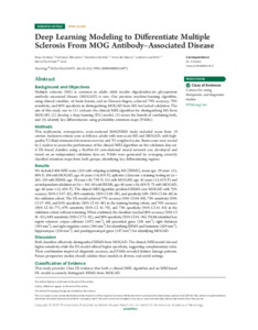 Title: | Deep Learning Modeling to Differentiate Multiple Sclerosis From MOG Antibody-Associated Disease |