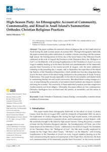 Title: | High-Season Piety: An Ethnographic Account of Community, Commensality, and Ritual in Anafi Island's Summertime Orthodox Christian Religious Practices |