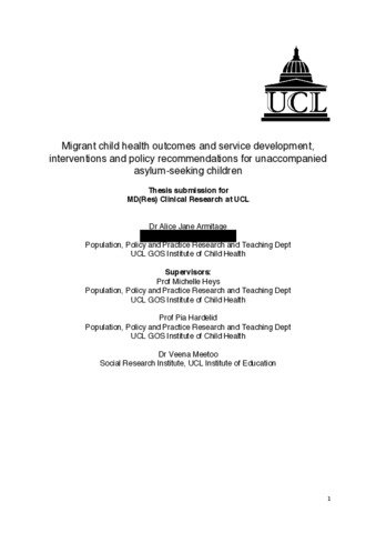 | Title: | Migrant child health outcomes and service development, interventions and policy recommendations for unaccompanied asylum-seeking children |
