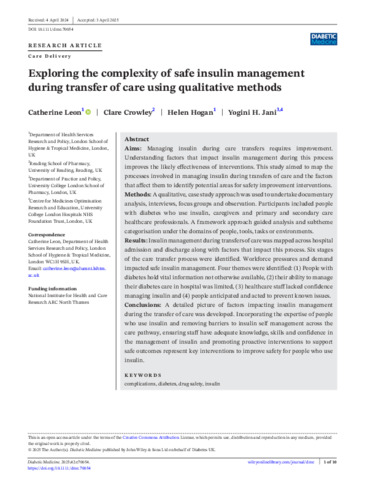 Title: | Exploring the complexity of safe insulin management during transfer of care using qualitative methods |