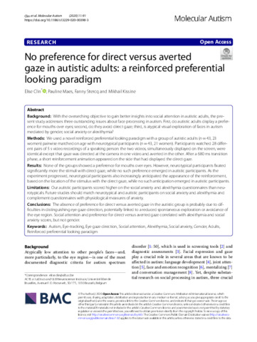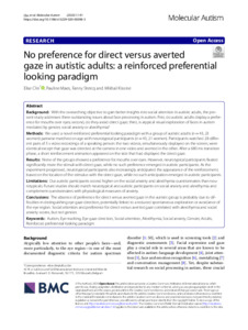 Title: | No preference for direct versus averted gaze in autistic adults: a reinforced preferential looking paradigm |