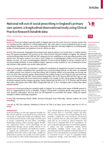 Title: | National roll-out of social prescribing in England's primary care system: a longitudinal observational study using Clinical Practice Research Datalink data |