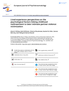 Title: | Lived-experience perspectives on the psychological factors linking childhood maltreatment to later intimate partner violence victimization |