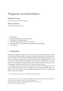 Under the standard Lewis–Stalnaker view, accommodation is a pragmatic solution to a coordination problem. Accommodation processes are triggered when a speaker uses an expression that requires that the conversational background contain some hitherto unmentioned information. Accommodation, then, is not automatic; it is a process addressees engage in to adjust to the course of conversation. However, it is not entirely straightforward to predict when or which presuppositions will be accommodated. This issue is complicated by the existence of so-called informative presuppositions, which carry new and at-issue information. On the one hand, recent crosslinguistic and experimental research programs suggest that acceptability of presupposition accommodation varies relative to the kind of presupposition trigger involved. On the other hand, there exists a whole tradition in experimental social psychology which suggests that presuppositions are automatically accommodated, even though they are false.