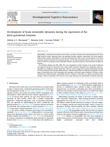 Title: | Development of brain metastable dynamics during the equivalent of the third gestational trimester |