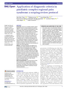 Title: | Application of diagnostic criteria in paediatric complex regional pain syndrome: a scoping review protocol |