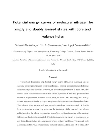 Title: | Potential Energy Curves of Molecular Nitrogen for Singly and Doubly Ionized States with Core and Valence Holes |