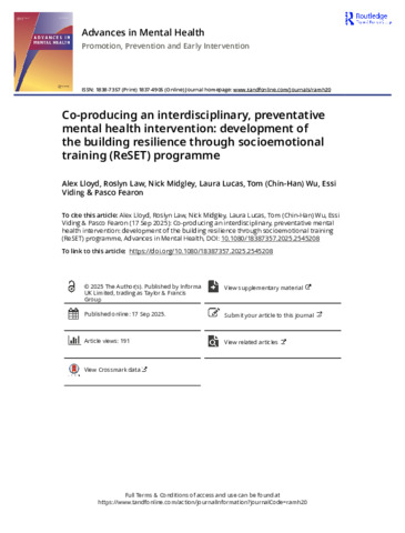 Title: | Co-producing an interdisciplinary, preventative mental health intervention: development of the building resilience through socioemotional training (ReSET) programme |