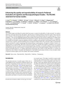 Title: | Enhancing the quality and reproducibility of research: Preferred Evaluation of Cognitive and Neuropsychological Studies - The PECANS statement for human studies |
